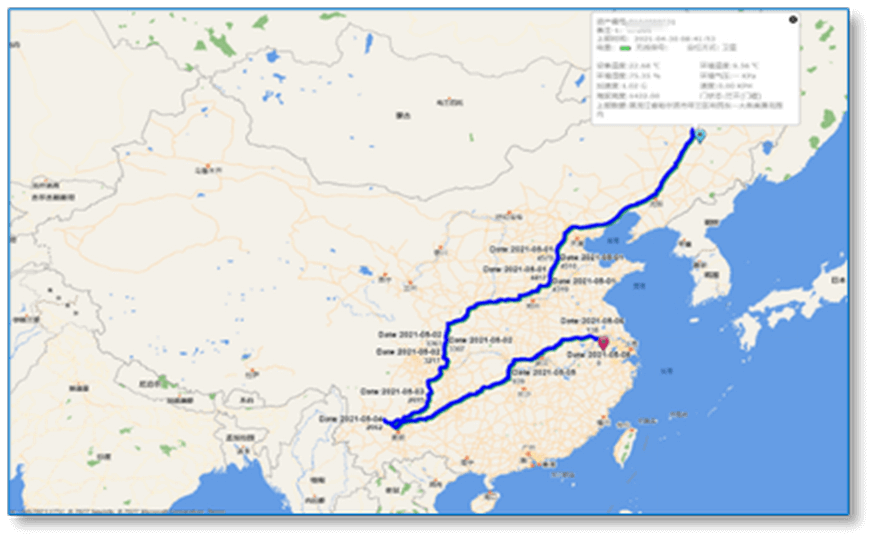 该解决方案集成了物联网智能硬件、全球通信服务、云数据分析和识别等,可以帮助客户通过统一的云平台,进行自主的、实时查询,获得整个冷链运输过程中的如下实时数据: